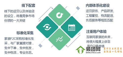 互联网家装发展到3.0时代,标准化产品会越来越纵深的方向发展,全屋定制已成大势所趋,这场战争最终考验将是企业所在的生态系统以及各自背后的资源链接和支撑。
